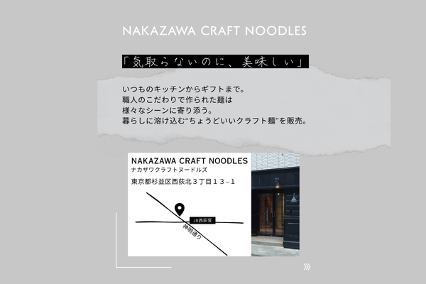 なかざわ製麺都内2店舗目の生麺販売店開店予定 なかざわ製麺、都内2店舗目の生麺専門店が2026年4月、西荻窪に誕生します☺️ 店名は「NAKAZAWA CRAFT NOODLES」 今、工事を含め準備真っ最中です 開店日等の詳細は後日発表、もうしばらくおまちください。 〒1670042 東京都杉並区西荻北3−13−1 JR西荻窪駅徒歩2分